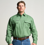 KILCOY | Mens Half Button Long Sleeve Work Shirt - Gum Leaf Green OBCMWS001-GUM